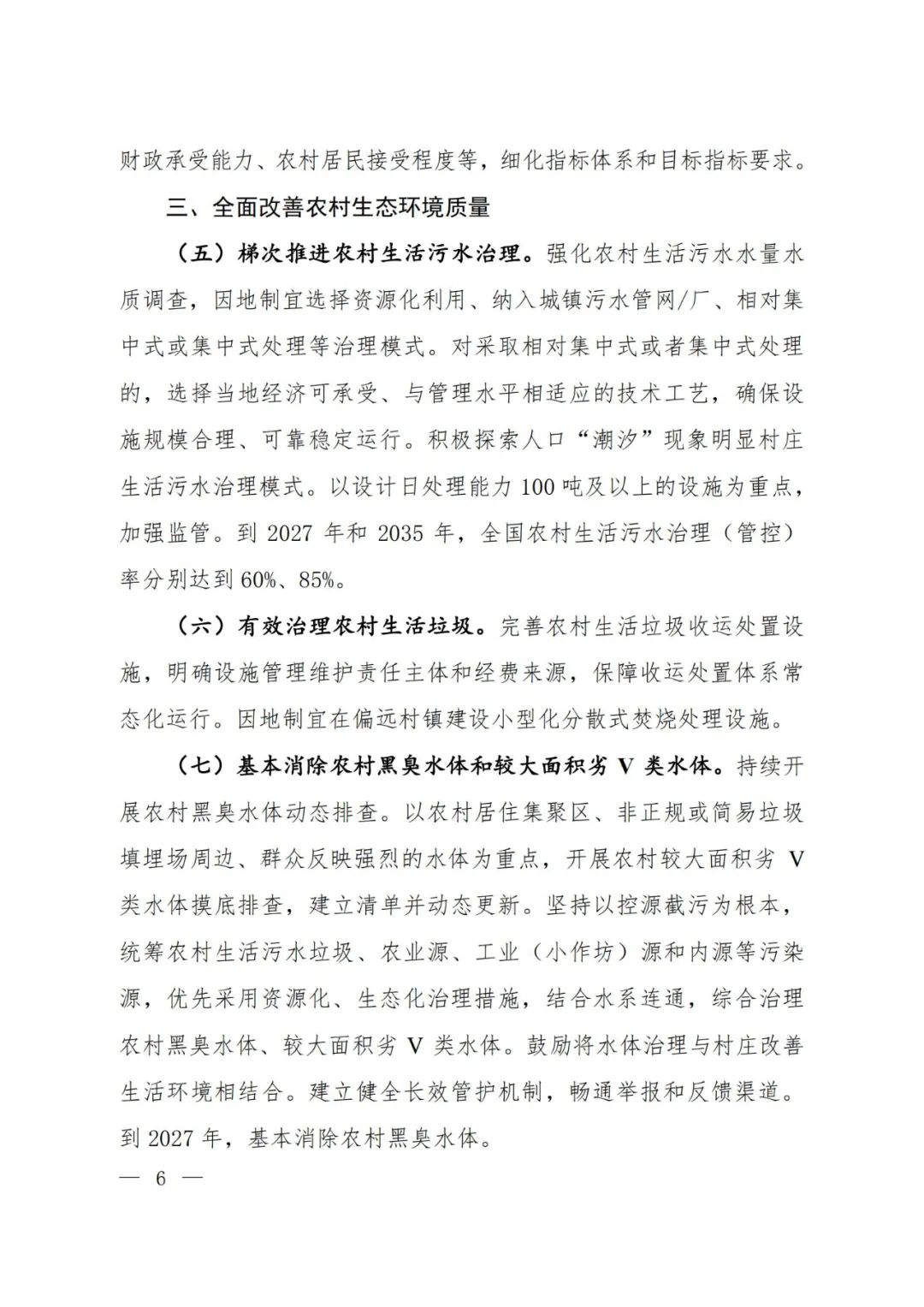全面改善農(nóng)村生態(tài)環(huán)境質(zhì)量。梯次推進農(nóng)村生活污水治理,有效治理農(nóng)村生活垃圾,基本消除農(nóng)村黑臭水體和較大面積劣Ⅴ類水體。協(xié)同推進畜禽養(yǎng)殖氨等臭氣治理,對群眾反映強烈的惡臭異味等擾民問題加強排查整治。綜合治理鄉(xiāng)村水土流失,大力推進生態(tài)清潔小流域建設(shè)。長效保護鄉(xiāng)村自然生態(tài)。