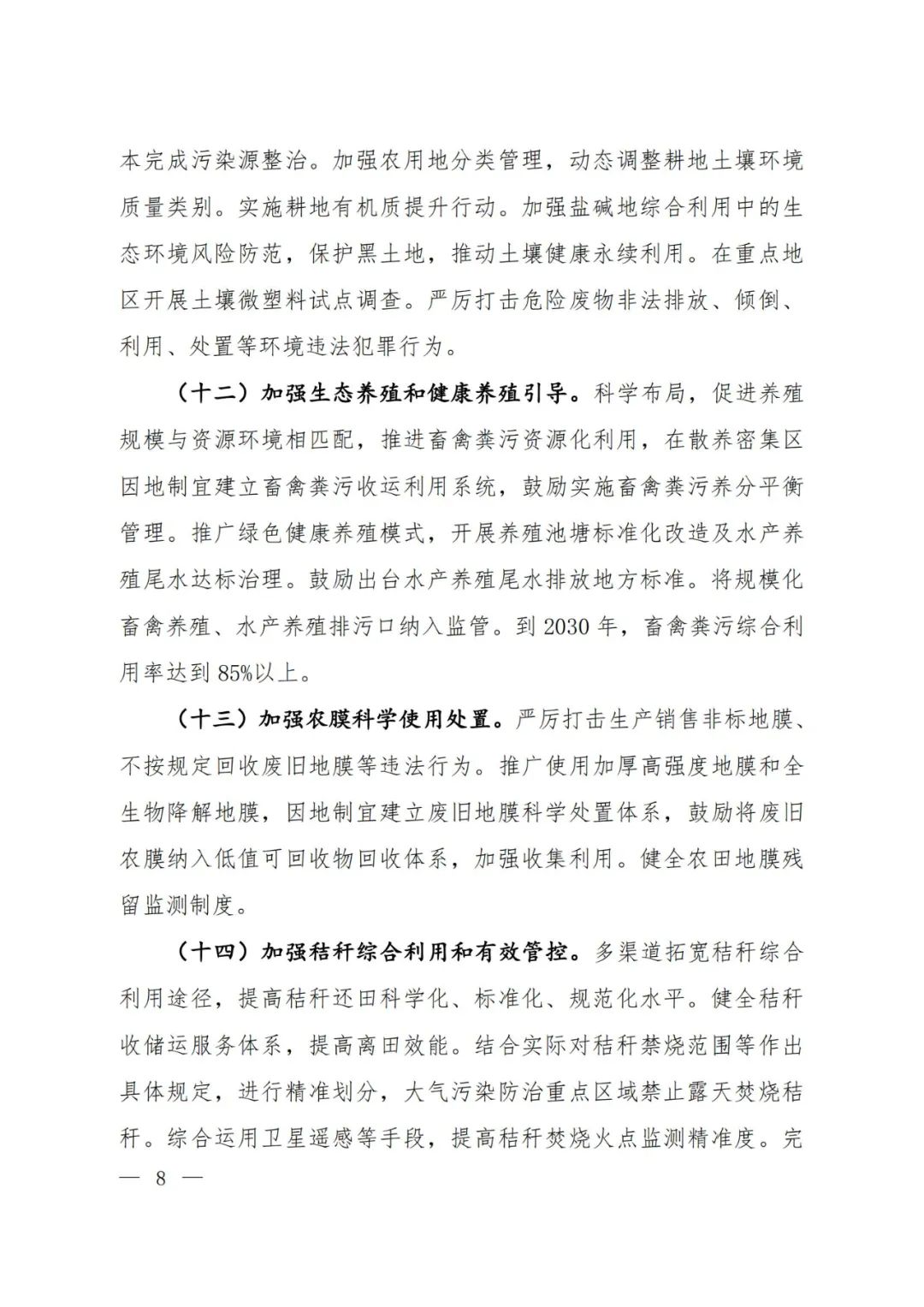 大力推進農(nóng)業(yè)綠色低碳發(fā)展。加強農(nóng)用地土壤保護,分階段推進農(nóng)用地土壤重金屬污染溯源和整治全覆蓋。加強生態(tài)養(yǎng)殖和健康養(yǎng)殖引導(dǎo),推進畜禽糞污資源化利用。加強農(nóng)膜科學(xué)使用處置,推進秸稈綜合利用。加強重點區(qū)域農(nóng)業(yè)面源污染系統(tǒng)治理。