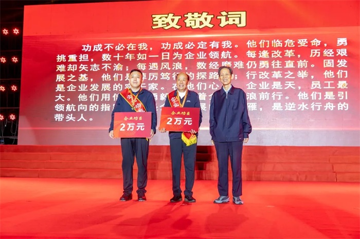 慶祝大會對在企業(yè)改革和經(jīng)濟(jì)發(fā)展過程中涌現(xiàn)出來的企業(yè)功臣、企業(yè)勞模進(jìn)行了隆重表彰。